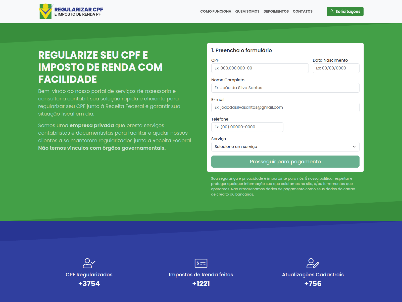 A site imitating the Chilean tax authority. The victim is prompted to enter their credit card information to receive a substantial tax refund — roughly US$375. Instead, the funds are siphoned from the victim’s account directly to the scammers
