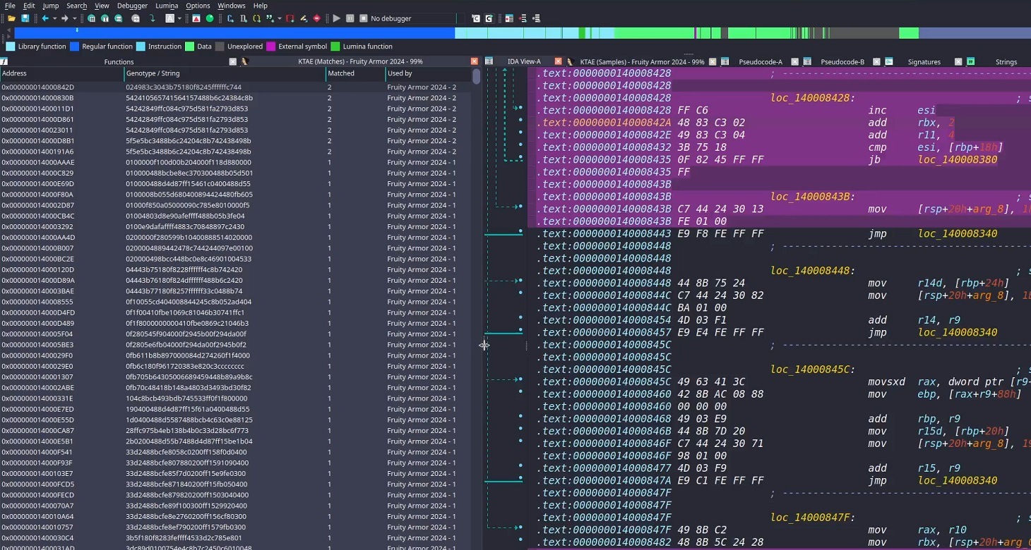 Inside the IDA Pro interface, the plugin highlights the specific disassembled code fragments that triggered the attribution algorithm. This doesn’t just allow for a more expert-level deep dive into new malware samples; it also lets researchers refine attribution rules on the fly. As a result, the algorithm — and KTAE itself — keeps evolving, making attribution more accurate with every run.